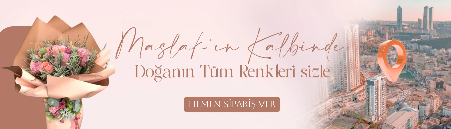 Maslak çiçek gönderme hizmeti konusunda çok pratik bir imkân sunan firmamız sayesinde renkleri ve kokusu ile dikkat çeken canlı çiçeklerin eşsiz güzelliği gölgesinde unutulmaz hediyelere imza atmak sizin elinizdedir. En zarif çiçekleri özel günleri canlandırmaya devam ederken, zor geçen bir günde dost eli niteliği taşıyarak değer verdiğiniz insanlara varlığınızı hatırlatır. Babalar günü, anneler günü, sevgililer günü, evlilik yıldönümü gibi özel günler başta olmak üzere yeni bebek ve terfi kutlaması gibi durumlarda taze çiçek aranjmanlarının sunduğu bu ayrıcalıklardan faydalanabilirsiniz.
